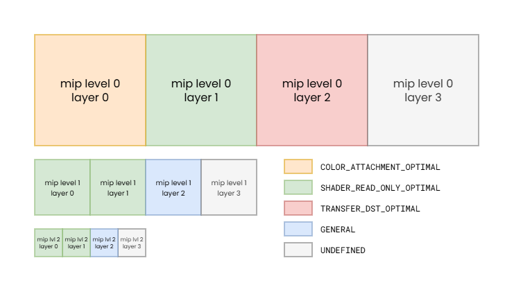 Note: while such variation of image layouts across individual image subresources is rare, it demonstrates that image layout state can be changed for each image subresource individually.